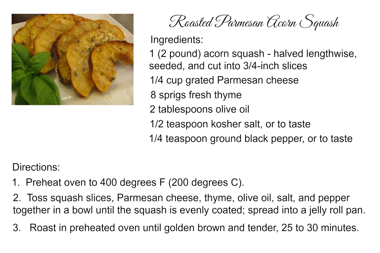 This is a very simple but delicious way to prepare squash. Even the squash haters in my family like this. I sometimes will double the amount of Parmesan cheese to make it extra cheesy. Acorn squash is a good source of vitamin A, niacin, folate, thiamine, vitamin B-6 and is especially high in vitamin C. And this is also super easy peasy to a make.
